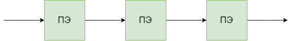 $${o\_ first\_ element}^{n} = \ {i\_ first\_ element}^{n - 1};$$ $${o\_ second\_ element}^{n} = \ {i\_ second\_ element}^{n - 1}.$$Частичная сумма поступает на вход ПЭ с данного процессорного элемента (штриховая линия).