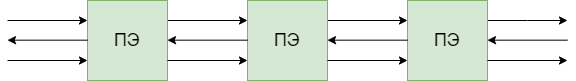 Процессорные элементы в такой схеме выполняют две операции и обычно называются сдвоенными элементами.