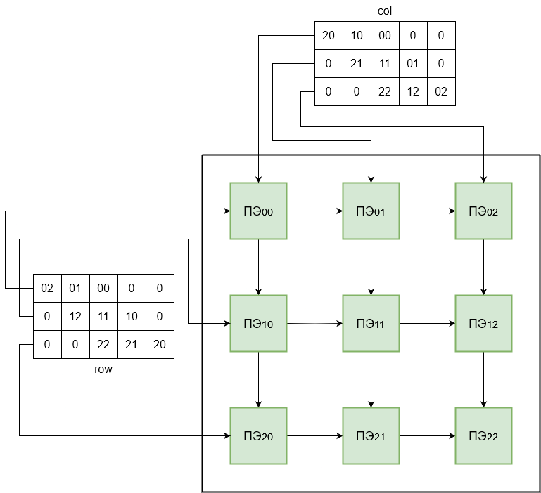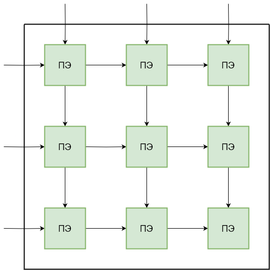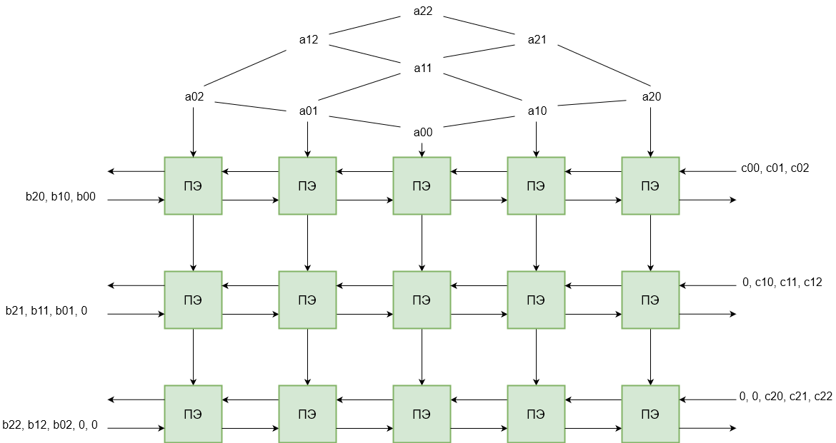 Таким образом, алгоритм работы систолического массива будет следующий: