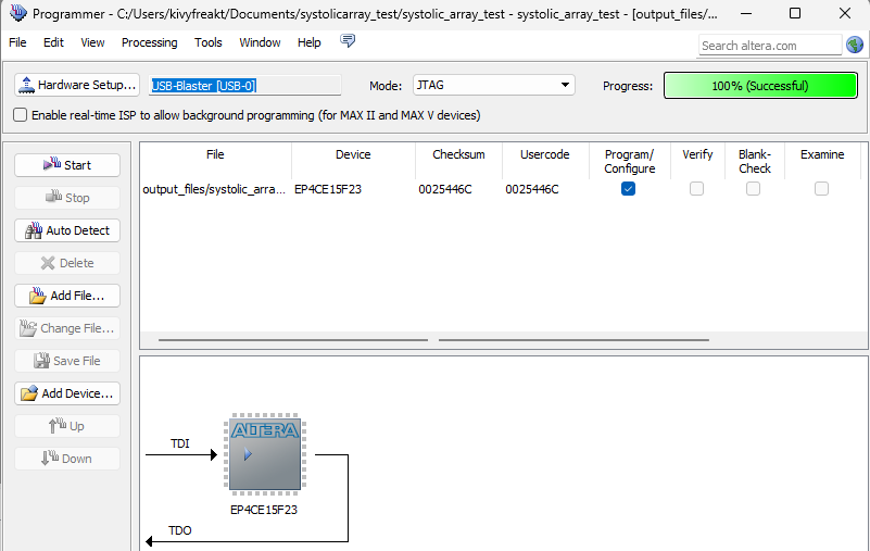 После успешной сборки и синтеза проекта выполняется прошивка отладочной платы.